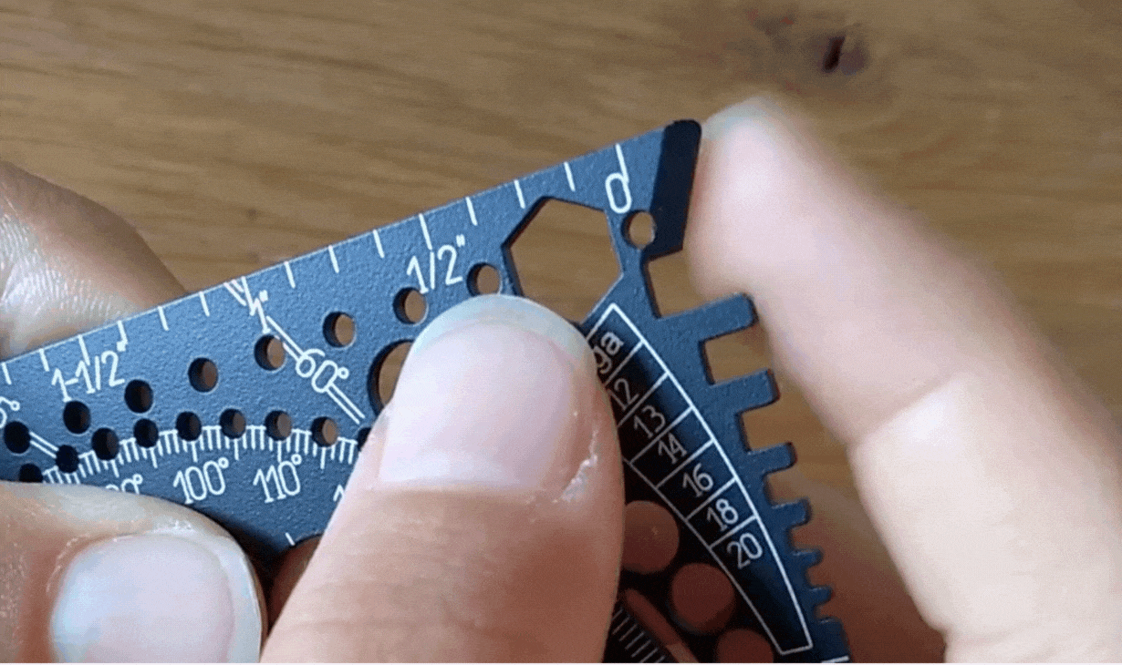 3つの基準【1.6mm/3mm/4mm】の目盛を搭載。それぞれ、【タイヤ溝に必要な最低基準/夏季推奨/冬季推奨】の単位です。定規の角をタイヤの溝に差し込むだけで、摩耗具合をすぐに確認。 交換時期の目安にも便利です。