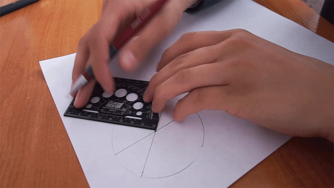 - 円テンプレートには、中心線と六本の放射線を配置。デザインを行う際に視覚的なガイドになります。